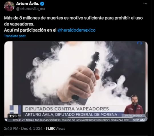 Me referí a Arturo Ávila por mentir para justificar la prohibición de los vapeadores, sacándose de la manga una millonaria cifra de muertos que el oficialismo había evitado con esa reforma constitucional. ¿Las menciones son una coincidencia?, no, el vocero de los diputados aprovecha cualquier espacio para promocionar los grandes logros de Morena y, de paso, presentarse como un adalid del oficialismo