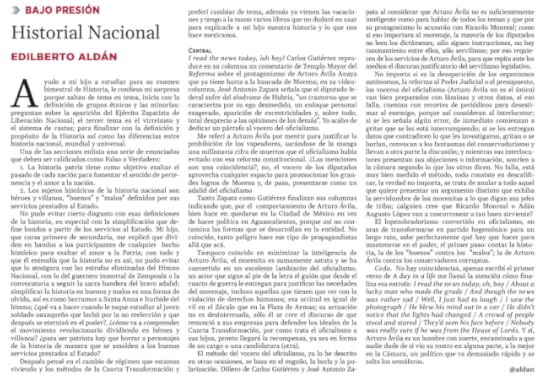 Después pensé en el cambio de régimen que estamos viviendo y los métodos de la Cuarta Transformación y preferí cambiar de tema, además ya vienen las vacaciones y tengo a la mano varios libros que no dudaré en usar para explicarle a mi hijo nuestra historia y lo que nos hace mexicanos.