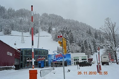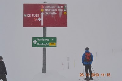 Selepas melepasi papan tanda ini, beberapa langkah di hadapan, peluncur ski akan mulai meluncur menuruni Gunung Titlis setinggi 3020 meter