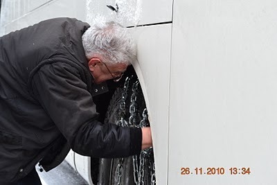 Pengalaman baru. Rupanya bas menggunakan rantai besi ketika menuruni bukit dalam salji lebat