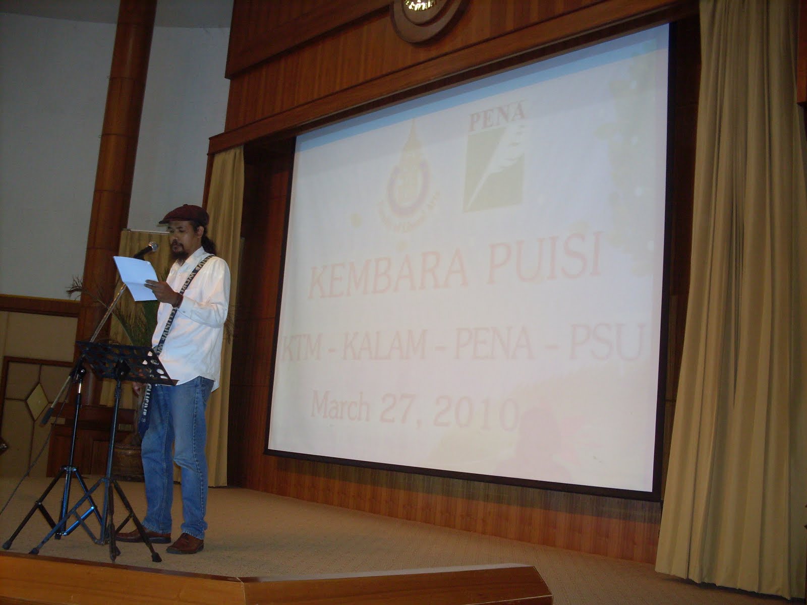 Pada 26-28 Mac 2010 telah berlangsung Kembara Puisi melalui Kereta api Tanah Melayu. Program yang dianjurkan oleh KTM dan KALAM dengan kerjasama PENA, Esastera, Kemudi dan lain-lain mendapat sambutan yang menggalakkan. Seramai 73 orang peserta menyertai Kembara Puisi yang bermula dari KL Sentral Kuala Lumpur hingga Stesen Kereta Api Hadyai. Acara kemuncak baca puisi diadakan di Prince of Songkhla University (PSU), Hadyai. KTM telah menyediakan empat gerabak khas untuk membawa para peserta ter...