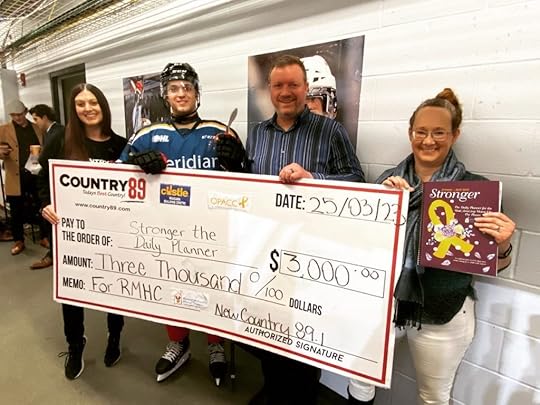 We have had an amazing partnership with Castle Niagara Building & Design Center in Fonthill, Ontario. This spring they partnered with the Niagara Ice Dogs hockey team and Country 98 and GiantFM radio stations to announce that for every goal the Ice Dogs made during the season, Castle Niagara would sponsor another planner! At the last game of the season the staff from GiantFm and Kevin Brolibruck from Castle Niagara presented us with a cheque for $3,000.