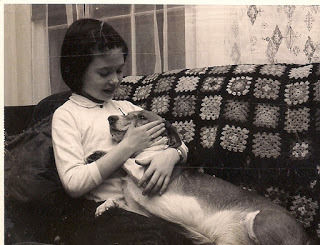 It's a story of a dog we had when I was a child, and how we didn't truly realize how patient he was until a catastrophe happened while we were on a trip. Here's a picture of me with Kleo: