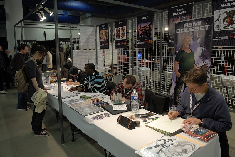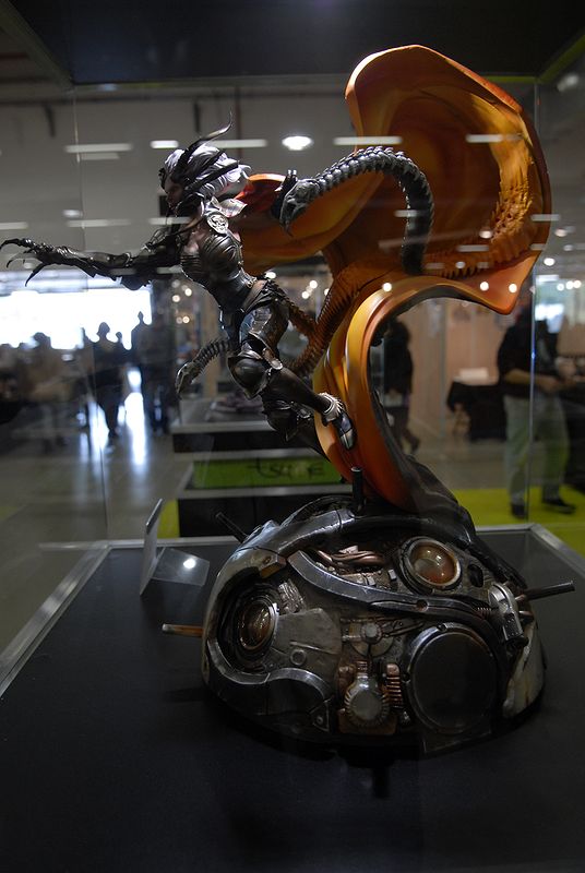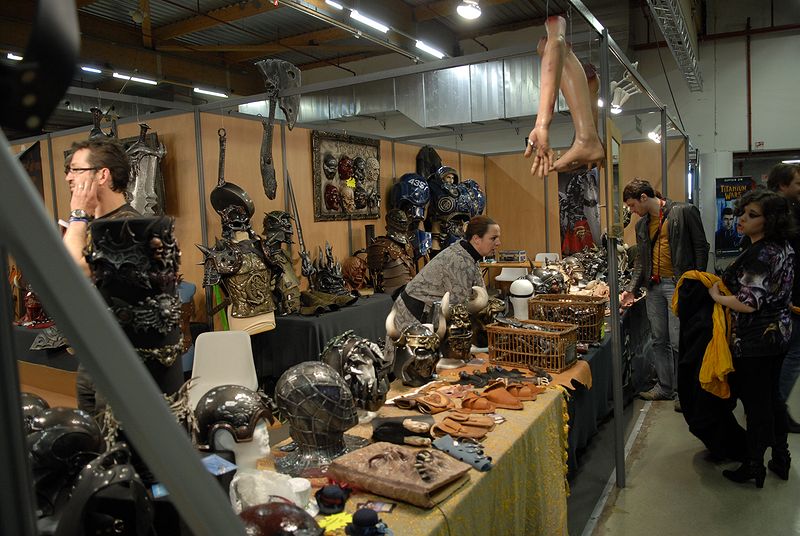 En arrivant sur le salon, cinq portes colossales annonçaient avec grandiloquence les différents quartiers à visiter. Rez-de-chaussée, trois entrées directes : les quartiers Nautilus, Tecklab et Métropolis, et deux portes s'élevant devant les escalators montaient vers Avalon et Little Tokyo. Si l'entrée était chère (19 euros la journée), il était facile de comprendre que cet argent était justifié plus que sur aucun salon auquel vous pourriez aller. Parce que dans les cinq pôles d'attraction, ce n'étaient pas seulement des auteurs qui étaient réunis avec quelques illustrateurs sur un site purement commercial, il y avait aussi des sculpteurs, des animateurs d'ateliers de dessins, d'écriture, de maquettes, de jeux de rôles, de jeux de plateaux ou de vidéos, des artisans et de simples artistes venus là que pour faire une fresque dans le week-end. Chaque pas était éblouissant de travail. Certaines œuvres n'étaient là que pour être admirées, renversantes de détails et de finesse. Et les allées étaient pleines de costumes divers qui se mélangeaient dans tous les lieux créant des anachronismes ou des scènes rocambolesques. Trolls et légendes, puissance 5 !