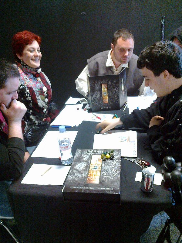 En tant que geek, j'ai été comblée. En tant qu'auteur, je suis obligée d'apporter quelques bémols. Tant de diversités, tant d'animations en tout sens, cela n'attire pas forcément les lecteurs. Pas beaucoup d'auteurs incontournables pour garder ses lettres de noblesse à l'écriture. Ce fut peut-être aussi une erreur de nous avoir tous séparés selon nos genres qui ne rentrent pas forcément dans des cases. Les stands étaient assez excentrés ; lors des animations, il n'y avait pas beaucoup de passage. Pour ma part, je n'avais que le tome I d'Eternité sur la table, les flâneurs attendaient plus : posters, marque-pages et autre. Au côté de Mestr'Tom et Fenzy le premier jour, et Anne Fakhouri le deuxième, je n'ai pas été assailli de lecteurs. Je tiens tout de même à remercier Matthieu (j'aurai aimé lui signer aussi les vieux tomes collector de Leïlan), Clément, Fanny (en espérant qu'elle lise Eternité 4 fois comme Leïlan), David, le fils de Michel (qui achetait pour la fête des pères de la part de sa mère [image error] ), L'ours des cavernes et Aurore, Eliott ( [image error] ), l'amoureux de Laetitia (qui venait de Brive !), Pascal son copain, Marius, et Fenzy pour sa Laetitia.