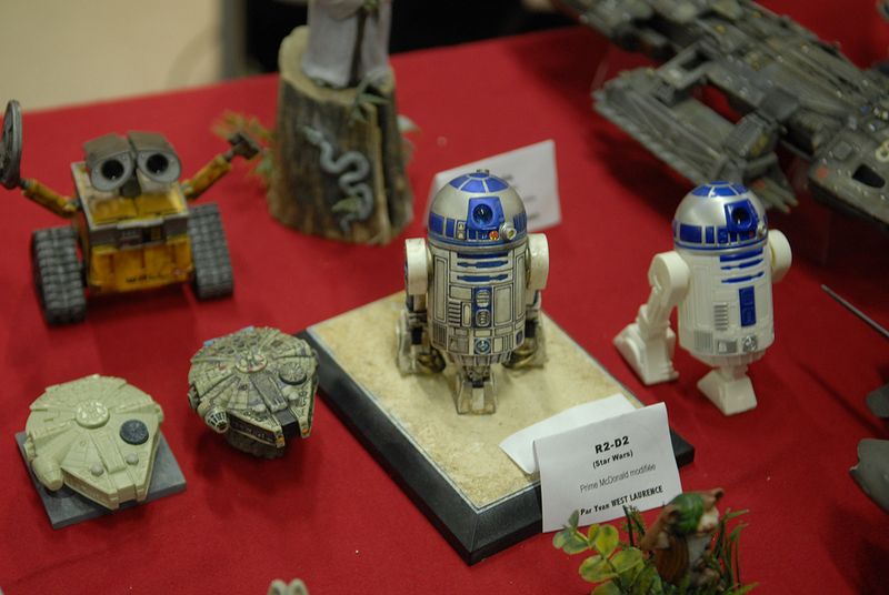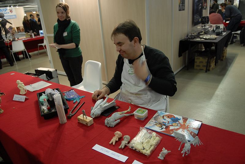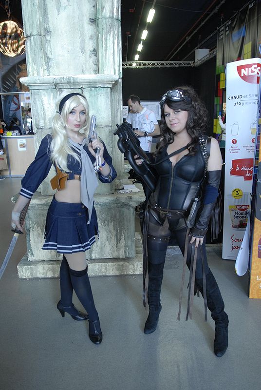 Samourais, gadgets guirly au possible, expositions de personnages cultes plus sensationnels les uns que les autres, quantité d'illustrateurs, bibliothèques de mangas, divers ateliers de peintures sur figurine, stands d"'origami", petits playmobils superhéros et même de la nourriture japonaise ! J'ai pu assister aux déboires d'un sculpteur qui pestait contre sa résine trop vieille qui s'écaillait au lieu de se laisser entailler. Sincèrement je ne voyais pas les défauts, je pense qu'il fallait être à deux centimètres de la figurine comme lui pour s'en apercevoir. J'ai également vu des maquettes incroyables de vaisseaux spatiaux faites à partir de fourchettes et de cuillères en plastique ou de jouets happy meal. Poupées aux talons compensés, geishas, baby dolls ou superhéroïnes, hôtesses ou militaires des années 60 revisités, même un batman composaient le plus gros de l'assemblée délicieusement délirante.