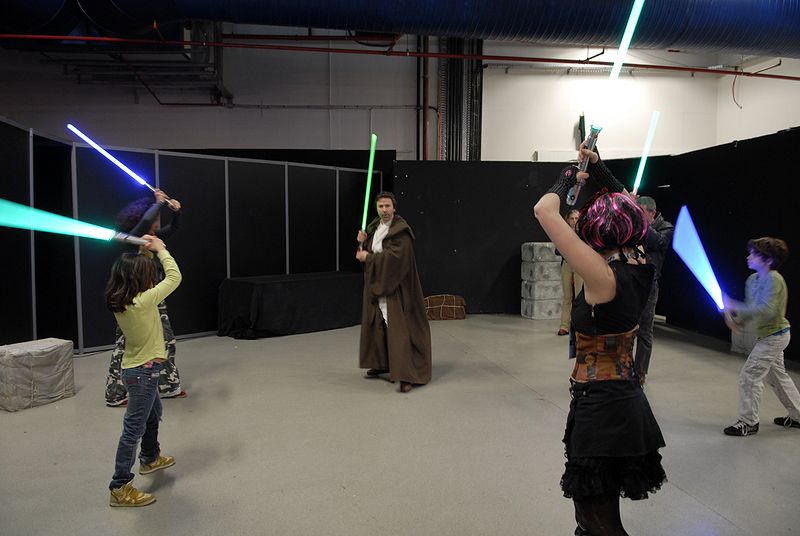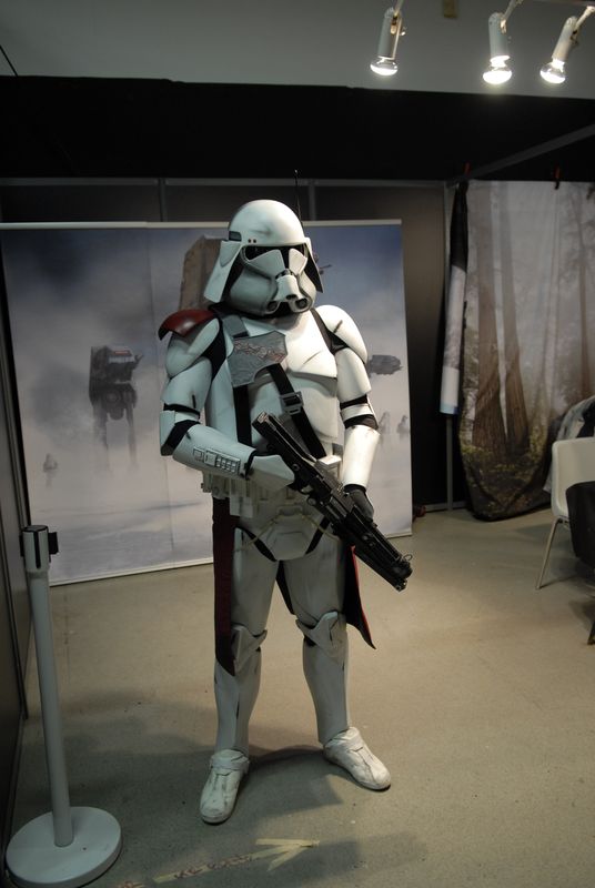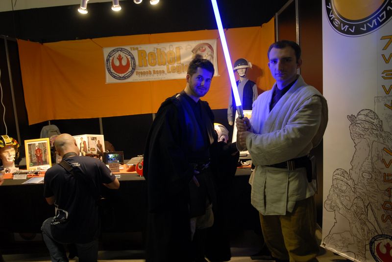 METROPOLIS était principalement le domaine des fans de Stars Wars avec les associations officielles des filiales françaises des forces rebelles et de l'empire (imaginez la rigueur des costumes et du vaisseau uniplace grandeur nature !). J'ai découvert un livre, the Jedi Path, qui est le manuel de formation des Jedi annoté par tous les Maîtres qui l'ont lu ; on apprend ainsi comment faire son sabre-laser ou tous les noms des coups portés à différents points du corps avec des commentaires de Yoda ou de Kenobi. Il y avait aussi une salle pour apprendre le maniement des sabre-lasers et un atelier Lego pour participer à la construction d'un Dark Vador à mettre à côté d'un Yoda et d'un chasseur de prime, et la vitrine de Playmobils au thème du coin. Mais ce quartier présentait quantité de BDs et aussi des maquettes à couper le souffle de séries (cosmos 1999, stargate) et de films (aliens, MIB notamment). J'ai passé des minutes incroyables à détailler un train de guerre qui a pris 8 mois à son réalisateur et qui se lance maintenant dans un projet d'automate fabuleux nommé Zoé.