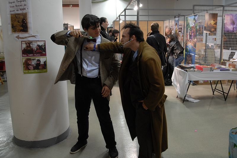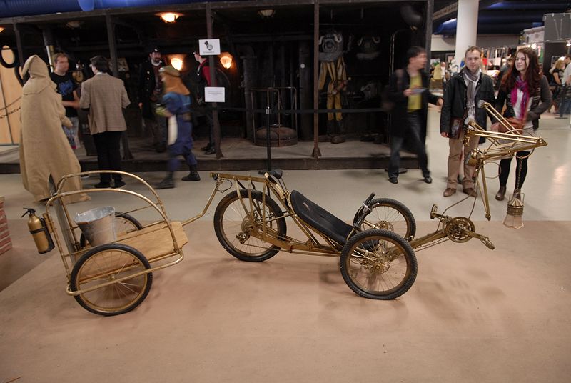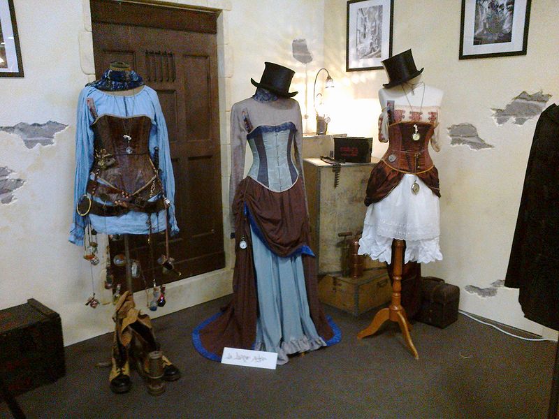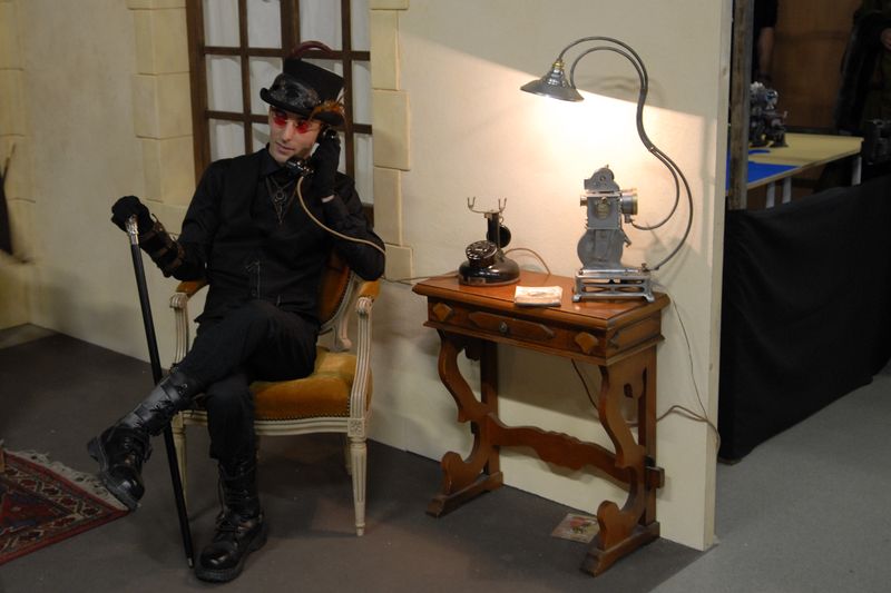 Quarante auteurs, quelques stands de bijoux, de chapeaux et d’accessoires de cuirs, une exposition de peintures et d’objets steampunk, une remise de prix pour des nouvelles et un petit cosplay steampunk. Les exquismen, Maxime Gillio, Benjamin Berdaux et David Boidin et toute leur équipe ont organisé un salon très sympathique dans la ville d’Hallennes-lez-Haubourdin (imaginez le temps qu’il faut prendre pour écrire ce nom sur toutes les dédicaces !). Le voyage dans le temps était le thème de l’année, le steampunk se trouvait évidemment à l’honneur et Cassandra O’Donneil avait été choisi pour marraine.