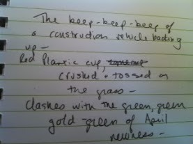 Here’s a page I scribbled when I was outside one spring day, writing with my 7th grade students. We were practicing noticing details.