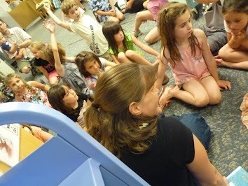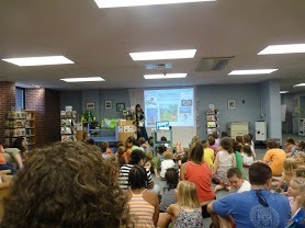 A while back, children's librarian Miss Karen asked me if I'd do an author visit for the Plattsburgh Public Library Summer Reading Program. I was planning to read SEA MONSTER'S FIRST DAY and OVER AND UNDER THE SNOW with the younger kids & show a presentation on research & writing for the older ones. I was imagining a dozen or so kids…so when Miss Karen emailed before the event to tell me she was expecting closer to a hundred people, my plan needed to change just a bit.
