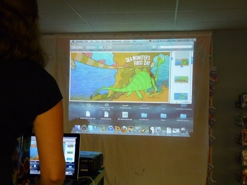 I fired off an "urgent – help!!" email to my editor & publicist at Chronicle Books, and within the hour, a digital copy of SEA MONSTER'S FIRST DAY landed in my in-box so that I could project the illustrations for the larger crowd. (Sending hugs to Melissa & Lea right now!!) And it was a good thing – SEA MONSTER'S FIRST DAY is a good-sized picture book, but it still would have been tough to see from the back of the room!