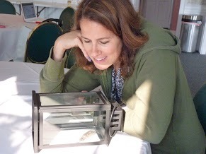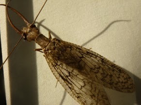 Sarah Albee found this Dobsonfly on her morning walk and borrowed one of the inn's lanterns to capture it so she could show everyone. Here she is…gazing at it adoringly.