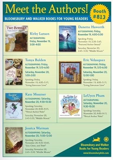 This is the dauntless Beth Eller, Bloomsbury/Walker school & library publicist and one of my heroes, along with Katie Fee. They set up the booth, ran the signings, shuttled authors to events, and fed me when I was hungry. (Thank you, Beth & Katie! I am waving & throwing kisses.)