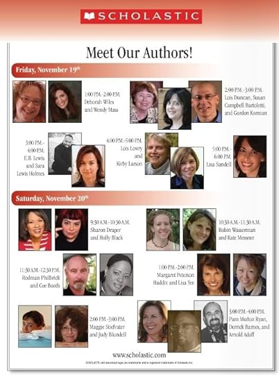 Friday afternoon, I had a chance to wander the exhibit hall for a little while before introducing a session with Wendy Mass & Danette Haworth. I was delighted to see so many friends -- and friends' books!