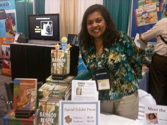 Here's Mitali Perkins signing BAMBOO PEOPLE and RICKSHAW GIRL at Charlesbridge.
