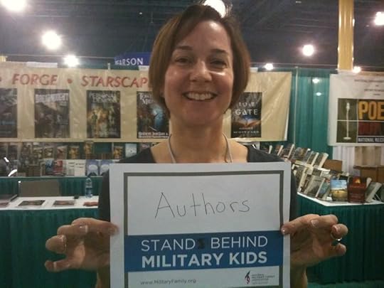She took photos of authors with this sign, to be uploaded to militaryfamily.org to show military kids that the nation supports them. You can go to the site and upload your picture if you'd like, too!