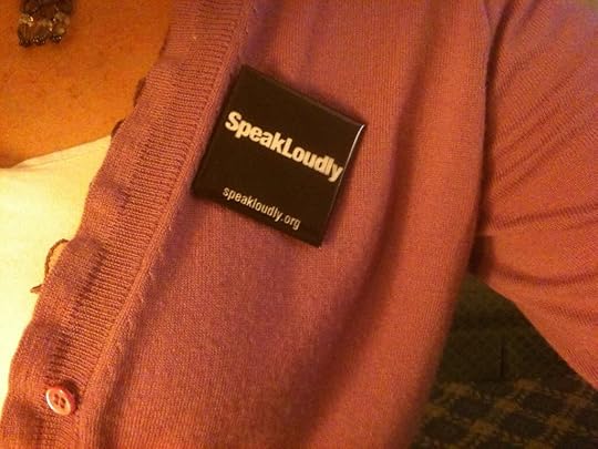 SpeakLoudly.org is a website and group of people speaking up against book challenges. They're good people, doing important work for kids' right to read - and I'm wearing my pin proudly.
