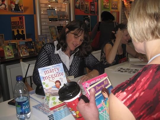 I also got to spend some time at the Scholastic booth, signing advance reader copies of my new MARTY MCGUIRE chapter book, illustrated by Brian Floca and coming in May.