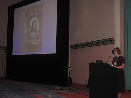 On Saturday morning, I spoke on a panel about Skype author visits and then hustled back to the exhibit hall. Some friends stopped by my SUGAR AND ICE and GIANNA Z. signing at the booth, including one who was a big surprise!