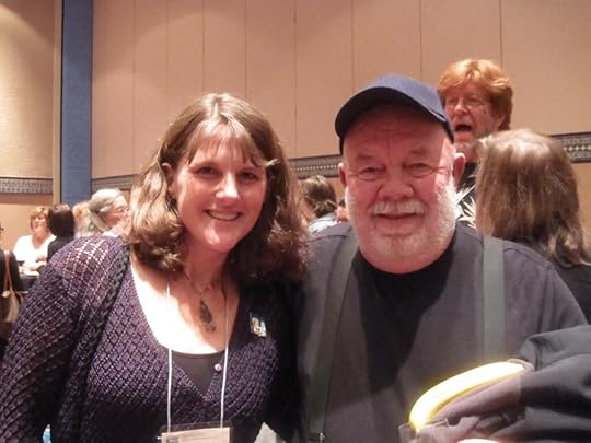 Lest you think the conference was all work and no play, I did take time out for a rather spectacular hot fudge sundae with my Bloomsbury publishing sister, Jackie Dolamore, who wrote MAGIC UNDER GLASS and the forthcoming BETWEEN THE SEA AND SKY (with mermaids!). Here's a picture of Jackie and me at the Middle Mosaic.