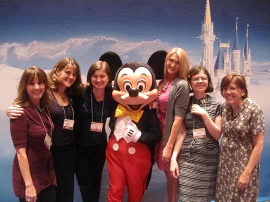 Here's the whole Walker/Bloomsbury crew with Mickey at the ALAN reception. From left to right, you'll see Danette Haworth, me, Katie Fee, the mouse, Jessica Warman, Jackie Dolamore, and Beth Eller. (Note that Jackie and I strategically placed ourselves a bit away from Mickey, as we had recently discussed the whole Mickey-on-the-soap creepiness.)