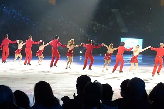 Almost every year, the touring skating show Stars on Ice launches its season Thanksgiving weekend in Lake Placid, and with a house full of skating fans, we've made it part of our holiday Saturday. This year, it was extra-special spending a night at the Olympic Center, since that's where most of my soon-to-be-released figure skating novel SUGAR AND ICE is set. I kept looking around, thinking of my main character. "Oh! Claire would love that costume." or "Claire can do that jump!"