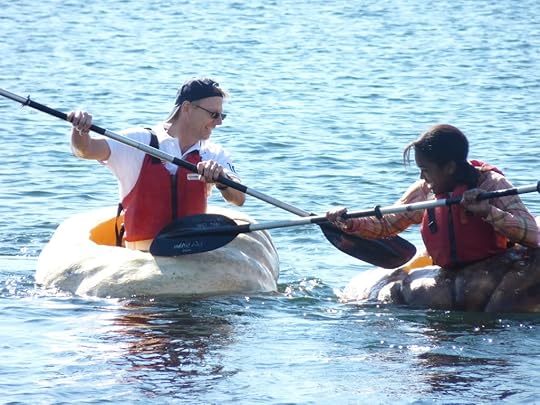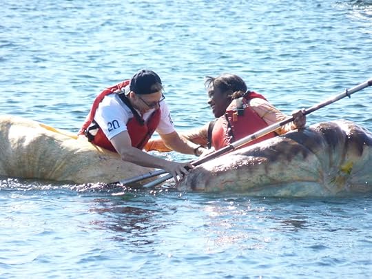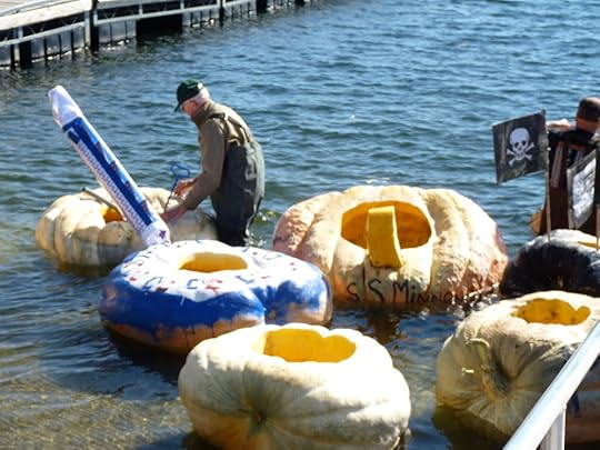 "Oh, not too much," I answered. "We're just busy Sunday. Tom has to paddle a pumpkin across Burlington Harbor."