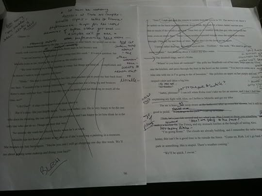 ...because I've been working on two big revision projects. This is a couple pages from EYE OF THE STORM. They...err...need just a bit of work. But revision is my favorite part of the writing process, so as messy as this looks, it's great fun.