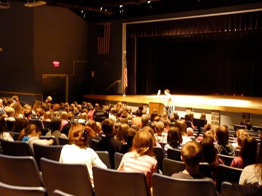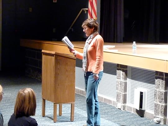 Thanks to the always-awesome Flying Pig Bookstore, the 3rd and 4th graders in my school district had an amazing author visit with Annie Barrows this afternoon. She's the author of Chronicle's IVY AND BEAN series as well as THE MAGIC HALF with Bloomsbury, all of which are big-time favorites in the Messner house. We hosted the visit at the middle school where I teach, since we have a large auditorium that could fit the kids from both elementary schools, and I had a chance to sit in on her reading!