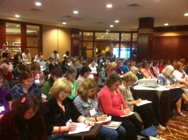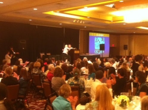 The warmth of the teachers and librarians at the conference more than made up for the lack of llama love, though. The Reading Round Up is a great event with hundreds of public and school librarians and teachers — book people, through and through. This was the room where I gave my keynote talk…
