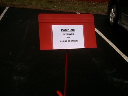As an author, you know a school has really gone out of its way to make sure you have a great visit when you pull into the parking lot and find a shiny red music stand marking your spot...