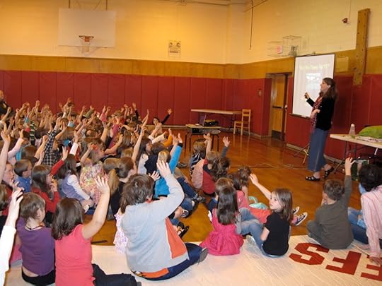 Today was one of those amazing, amazing author visit days. I talked with kids about books, was given beautiful artwork, had a fabulously fun lunch with some fourth graders, laughed a lot, and even cried a tiny bit... I'll tell you why in a minute, but first, a HUGE thank you to the teachers, librarian, and kids of Saranac Elementary.