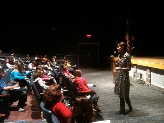 1. My students were lucky enough to have not one but two great author events this week! The first one was a live-and-in-person visit from Rebecca Stead, the author of WHEN YOU REACH ME, winner of this year's Newbery Medal. Here's Rebecca talking with our seventh graders.