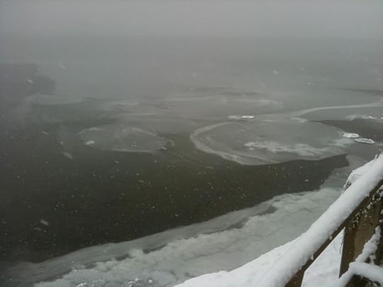 We've had crazy weather on Lake Champlain this week. First, it was a snowstorm that dumped about a foot of snow at my house and way more in places like southern Vermont. And it was a heavy, wet snow that somehow managed to turn the shoreline area of Lake Champlain into a sort of slushy swirl. This photo doesn't entirely capture it, but this was something I'd never seen before. That's not ice...it's floating snow-slush.