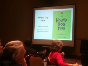After brunch, it was time for the session celebrating NCTE’s Notable Books in the Language Arts, where OVER AND UNDER THE SNOW was one of thirty books honored. I was happy to see my friend Linda Urban’s HOUND DOG TRUE on the big screen, too!