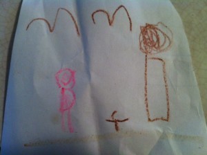 I asked him to tell me about his picture. “That’s you,” he said, pointing. “You’re the pink one, and you’re walking in the woods. And those are animal tracks.” They were from a desert animal, he told me, maybe a frog or a prairie dog. This is one of the reasons I love school visits so much!