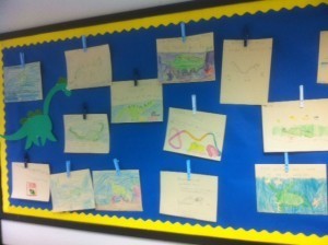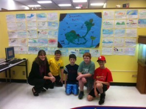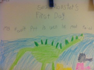 The hallway near the library was full of fantastic student art. Second graders had illustrated their favorite scenes in SEA MONSTER’S FIRST DAY.