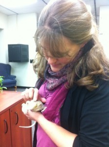 He’s the official bearded dragon of the Bellerive Elementary Library. I even got to hold him for a bit while the students cleaned out his cage.