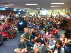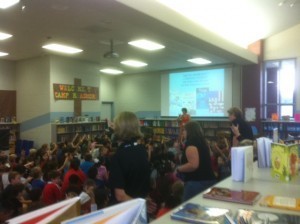 Librarian Cari Young, who coordinated my week of visits, heads up the library here and did an amazing job getting her readers ready for today’s presentations.
