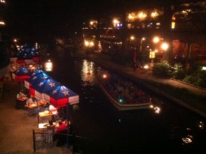 When I’m visiting a city for school or library visits, I always love to see the area, so I was thrilled when San Antonio librarian friends Cari, Sue, and Natalie asked if I’d like to join them for dinner on the River Walk last night. We enjoyed some great Mexican food, the weather was perfect (it’s no longer outdoor dining weather at home!), and the view was spectacular.