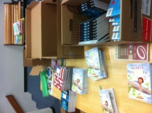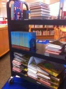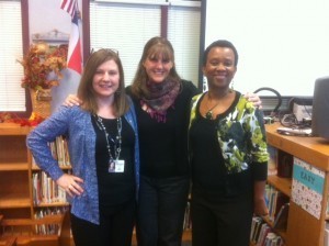 Kristin and Rachel are PTA library volunteers who help keep the place running. Today, in addition to taking care of breakfast (breakfast tacos!) and lunch for my author visit, they were getting ready for the school’s upcoming Scholastic Book Fair.