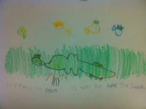 Gordon is on loan from the regional educational center, which loans out not only the usual books and A/V supplies but also live animals. Gordon’s visiting for two weeks, and while he’s in the library, kids are invited to write his diary.