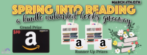 Your love of books could help you win a $50 Amazon gift card or one of two bookish tote bags & a $10 Amazon gift card bundle! Go here now to claim your giveaway entries and get new books for free >> https://www.litring.com/spring-into-ku-giveaway/