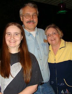 And here's my family, a candid photo of my dh and daughter (whose birthday is tomorrow on Pearl Harbor Day).
