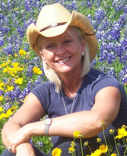 My guest today is a great gal (I don't call every woman a "gal." To me that means, a good-hearted woman who always has a smile for everybody.") I love this photo of her sitting in a field of Texas bluebonnets. She's a Texas gal you see. GRIN