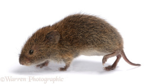 Field Vole (Microtus agrestis) from Warren PhotographicI was wearing garden gloves and the vole was a bit startled by sunlight but too fast for me. Because I had a hose in my right hand, I aimed it at the vole. I figured the wetting would confuse it enough that I could sweep down fast and scoop it up with some thatch, then release it. Or really, I wasn’t thinking much. But it did work: the vole, suddenly damp, froze for a moment. I snatched it and cradled it in my gloved hands (they bite!) and let it go along the edge of the meadow.