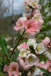 The image on the right is from a book in the Metropolitan Museum of Art’s Department of Asian Art, available through its new digital collection of Japanese illustrated books. It is written in Chinese, however: Jieziyuan huazhuan; Kaishien gaden 芥子園畫傳 and is catalogued as The Mustard Seed Garden Painting Manual (3rd Chinese edition): [volume 3]. I do not read Chinese, but I think the drawing must be of quince in flower. My photo of pink quince blooms focuses on a particularly floriferous branch; in fact, the quince in my back yard is thorny, broken off in places, and often a bit scarce as to blooms–more like the drawing.