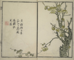 The book itself is interesting. It demonstrates and describes how to paint these shrubs. The sketches show the stems as the initial composition, with gaps where the blossoms are later to be painted. Then the blossoms get painted in, and then ragged lines of twigs and thorns to complete the painting. Since I cannot read the text, I interpret the stages from the drawings.