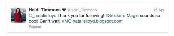 Ambition: To come upon a Texaco sign burned out to spell the word Taco. Bad Habit: I chew on straws. And pens. Celebrity Crushes: Two warnings: 1.) I’m old. 2.) My friends often like to point out that there is absolutely no cohesiveness to my celeb crush list. Most recent addition: Jason Momoa. Mainstays: Paul Rudd (since Clueless!). Henry Cavill. Chris Thile. Taye Diggs. And John Schneider, the Original Bo Duke. Drink: Diet Dr. Pepper. And coffee. I don’t like water but I try to trick myself into believing I do. Education: Hogwarts, Class of 1999. In my dreams. But did you know The Battle of Hogwarts actually happened in 1998?Food: Strawberries are my #1 favorite food. I like most sugary crap-food too (chocolate!), but strawberries, which seem too awesome to be healthy, have always been my fave. Guilty Pleasures: Good jeans (all denim is not created equal). Hardcover books. New books. Books, basically. Travel (which usually requires saving up for a decade, but it’s always worth it). Peanut Butter M&M’s. Gilmore Girls reruns. Magazines (especially Southern Living, Marie Claire and Garden & Gun). Cute clothes. Sleeping in. But I don’t really feel guilty about any of that. Ah! Here’s a guilty pleasure: McDonalds french fries dipped in hot mustard sauce. That's probably gross isn't it? I can hear my arteries rusting even as I type.Hometown: I grew up in a small town in East Tennessee. This song reminds me of my hometown (in a sweet way). (Don’t click through if you don’t like country music ;). I currently live "where the city in October looks like fire". My favorite city is London. It "swings like a pendulum do." Ice Cream: Bluebell’s Pistachio Almond. For now. But I’ve tried lots of ice cream in the last year for, ahem, “research”. And I haven't met an ice cream that I don't like. (Have I mentioned that there is some very ... interesting ice cream in A Snicker of Magic?). Jonesing for: A new novel from Jenny B. Jones. I check her website approximately every two days to see when the french toast she's going to announce a new book. I also email her like ten times a day ... but I try to refrain from asking about her new book at least eight of those times. Kryptonite: Love songs. Look-a-like: A park ranger in Colorado told me that I look the way she always imagined a fairy would look. She said, “You just need a little set of pink wings!” I think the altitude was getting to her. The cashier at Bi-Lo squints and says that I look like Emma Stone. My mom thinks I look like Julianne Moore. Ashley from Twitter recently told me that I look like Neyla Pekarek, of The Lumineers (Thanks, Ashley! :). A guy on a dark airplane once leaned over and said, “You look like the, uh, the one actress. You know? The one in The Moulin Rouge?” While he could have been referring to any of the Diamond Dogs, I like to think he meant Nicole Kidman. But my favorite look-a-like is when my mom posted this pic of my granny on Facebook: