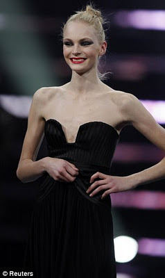 Sure, she looks like the specter of death itself, a terrifying albino Twizzler woman, but she is in fact an actual professional model. If you have ever described yourself as "curvy" or "sexually attractive to straight men" (especially a Kardashian) then I'm afraid you probably aren't a model, Rita.
